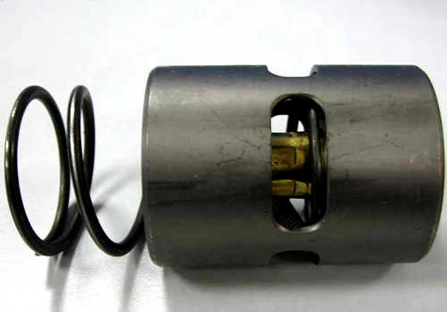 يستخدم صمام التحكم في درجة الحرارة مبدأ التمدد الحراري والانكماش، ومراقبة درجة حرارة الزيت في الوقت الحقيقي من خلال عنصر استشعار درجة الحرارة. عندما تنخفض درجة حرارة الزيت عن عتبة محددة (على سبيل المثال، 71 درجة مئوية)، يغلق قلب الصمام دائرة الزيت المبرد، مما يسمح لزيت التشحيم بالدوران مباشرة إلى الوحدة الرئيسية للتسخين السريع. عندما تكون درجة حرارة الزيت مرتفعة جدًا، يفتح قلب الصمام الصمام الالتفافي، ويوجه الزيت عبر المبرد للتبريد، مما يضمن أن الوحدة الرئيسية تعمل دائمًا ضمن النطاق المثالي من 68-85 درجة مئوية، مما يمنع التكثيف وهدر الطاقة.