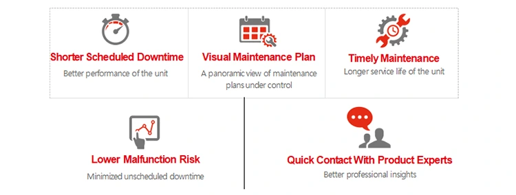 سوف تستمتع بالشحن المنتظم لقطع الغيار والتذكير بالصيانة اليومية، وضمان هوائي لمدة 5 سنوات (لضاغط الهواء اللولبي الدوار RM الجديد المملوء بالزيت)