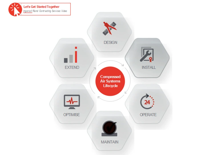 سوف تستفيد أعمالك من شراكة Ingersoll Rand من خلال خبرتنا الواسعة وخبرتنا العالمية لضمان الموثوقية وانخفاض تكاليف الصيانة وسهولة الخدمة وتحسين النظام.