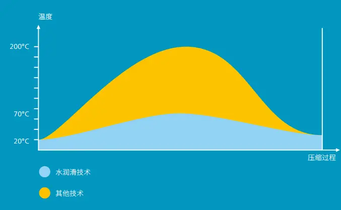 يتمتع الماء بقوة تبريد ممتازة ويزيل الحرارة من المصدر بشكل فعال. ويتم التخلص من هدر الطاقة الناتج عن توليد الحرارة، ويمكن إنتاج المزيد من الهواء المضغوط لكل كيلووات من الطاقة. ويقلل الهواء المضغوط المبرد الضغط الحراري على المكونات، وبالتالي إطالة عمر الخدمة.
