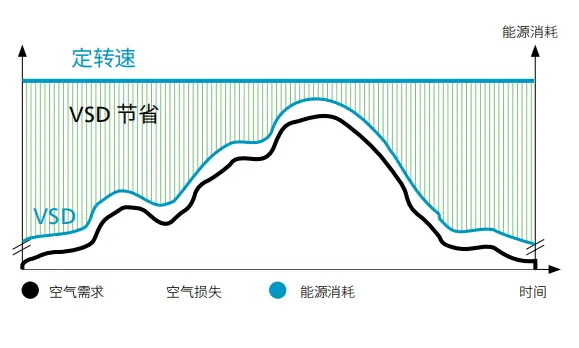 يمثل استهلاك طاقة الضاغط أكثر من 70% من تكلفة دورة الحياة بأكملها، ويستهلك إنتاج الهواء المضغوط أكثر من 40% من إجمالي فاتورة الكهرباء للمحطة. ولتقليل استهلاك الطاقة، طورت أطلس كوبكو ضاغط الهواء الخالي من الزيت والمشحم بالماء VSD. لا توفر تقنية VSD الكثير من الطاقة فحسب، بل تحمي البيئة أيضًا للأجيال القادمة. وبفضل استثمارها المستمر في هذه التكنولوجيا، تقدم أطلس كوبكو مجموعة واسعة من محركات الأقراص ذات السرعات المتغيرة (VSD) ضواغط الهواء في السوق.