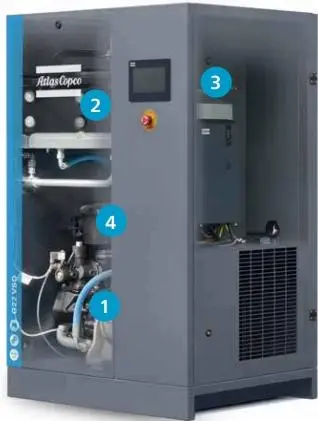 تم تصميم ضاغط الهواء ذو التردد المتغير VSD من Atlas خصيصًا للتشغيل المستمر. يعتمد نظام القيادة محرك مغناطيسي دائم فعال، والذي يمكن أن يحقق تأثير تبريد الزيت الممتاز. يمكن لتقنية VSD تحقيق توفير في الطاقة يصل إلى 35%، كما أن حجمها الأصغر يضمن مرونة التركيب.