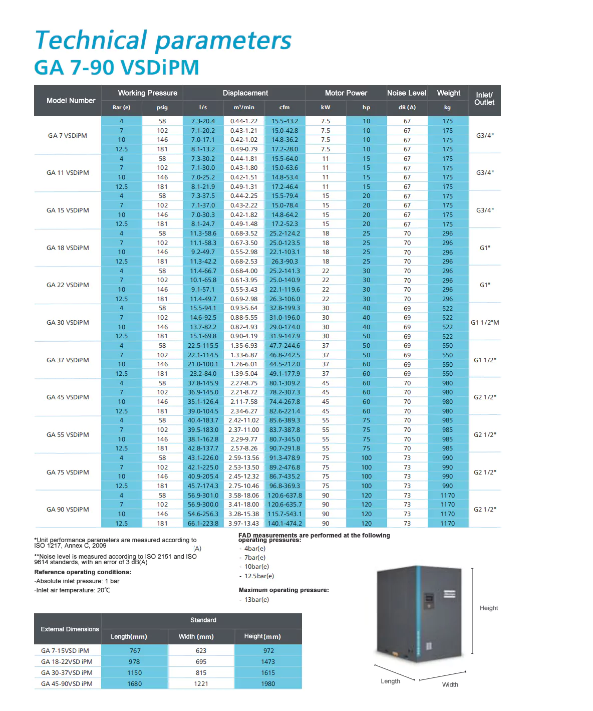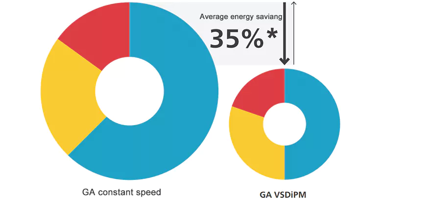 إن GA30-90VSDiPM هو ضاغط هواء عاكس موفر للطاقة حقًا بالنسبة لك. يمكن لنظام القيادة المبتكر والتصميم العاكس المخصص لضواغط الهواء أن يوفرا ما يصل إلى 35% من الطاقة، مما يضمن الإنتاج المستدام ويقلل تكاليف التشغيل بشكل كبير.