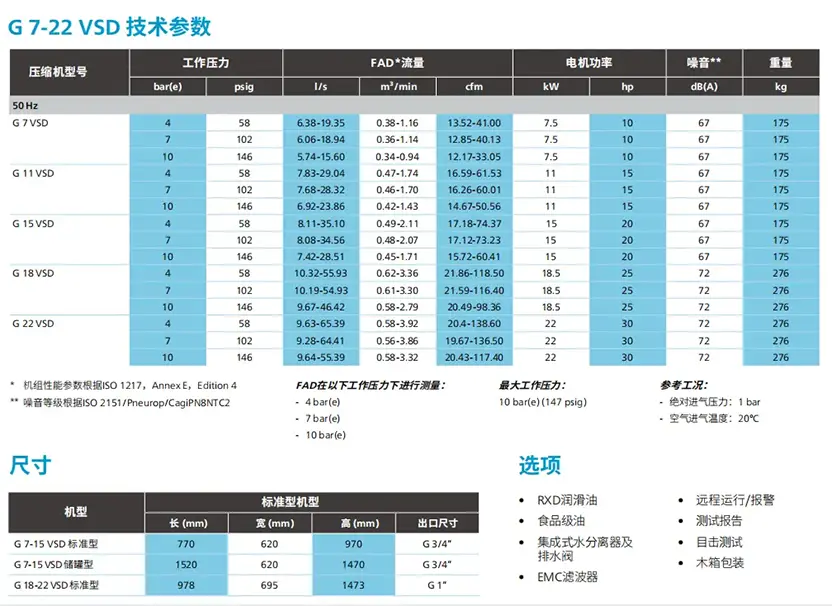 تعمل تقنية المحرك متغير السرعة G7-22 VSD على تمكين سرعة محرك الضاغط من تلبية الطلب على الهواء لديك.